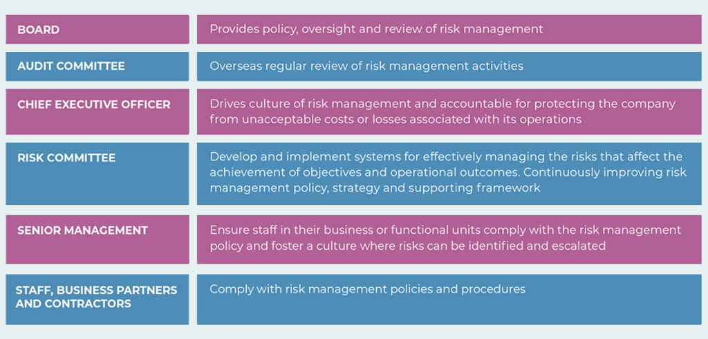 The following table summarized the roles and responsibilities of each level in discharging their duties on risk management: